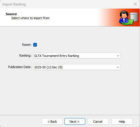 Your tournament ranking week is the week of the GLTA Tournament Entry Rankings snapshot that you should use to process the seedings for your tournament. In the past these details were sent to you. However, it can now be found on the GLTA World Tour Calendar. The format is YYYY-MM (i.e. 2025-50). You can import the rankings for this week into your tournament before adjusting player divisions and seeding players. See the section on importing rankings for how-to instructions.