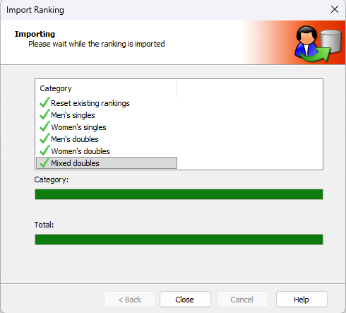 - then press “Next”, you will see the ranking points will then import on to your tournament planner
